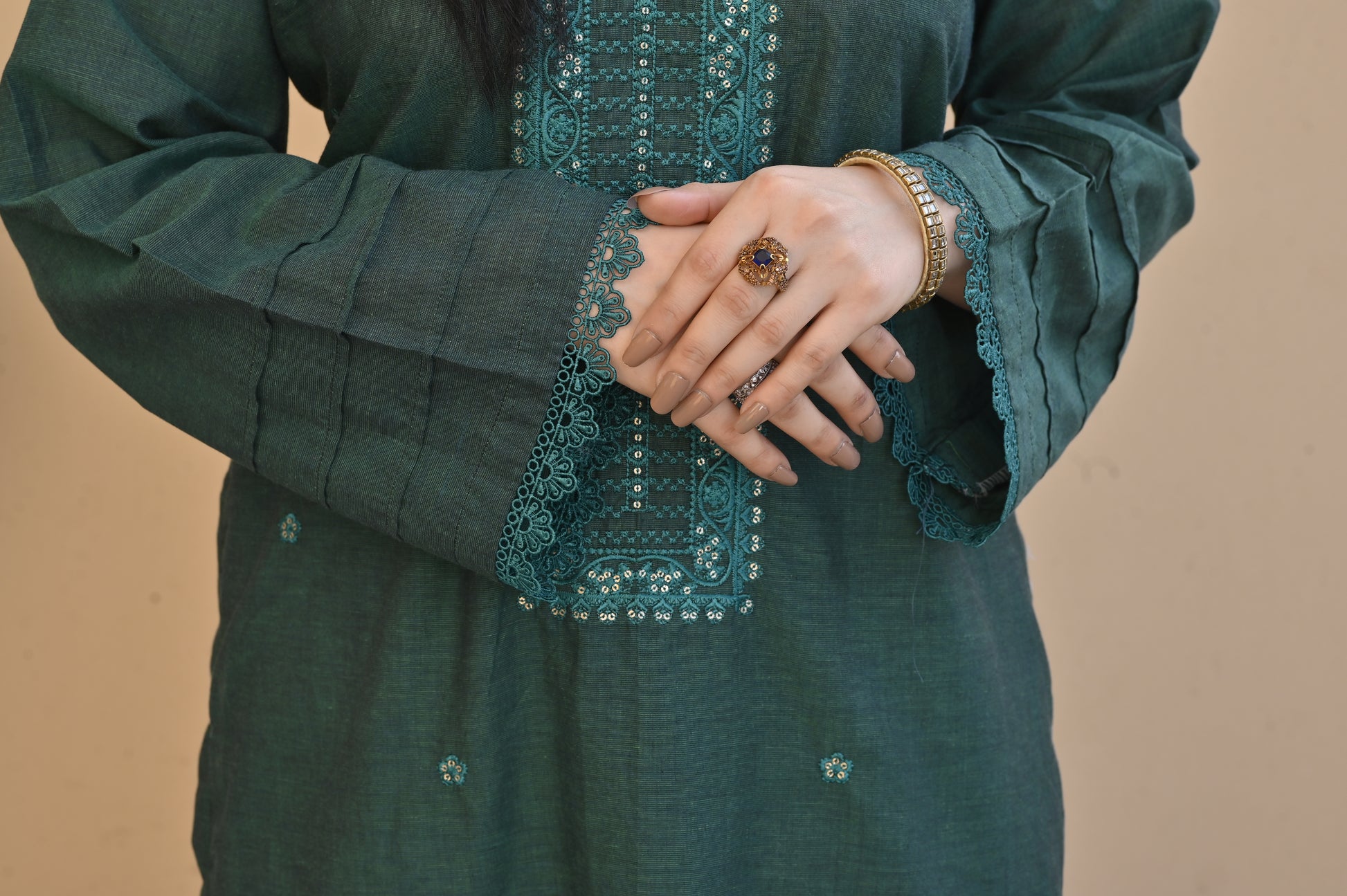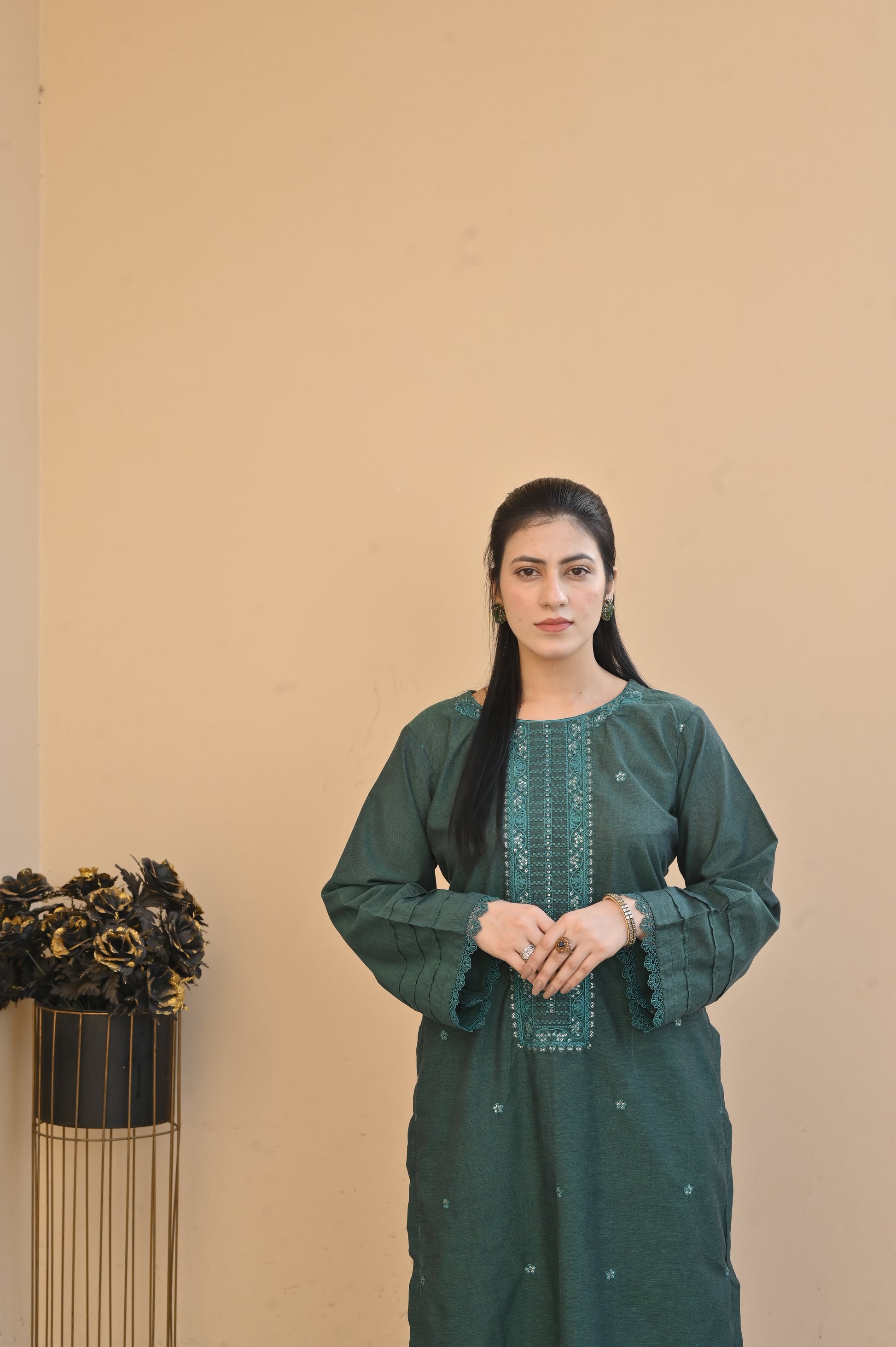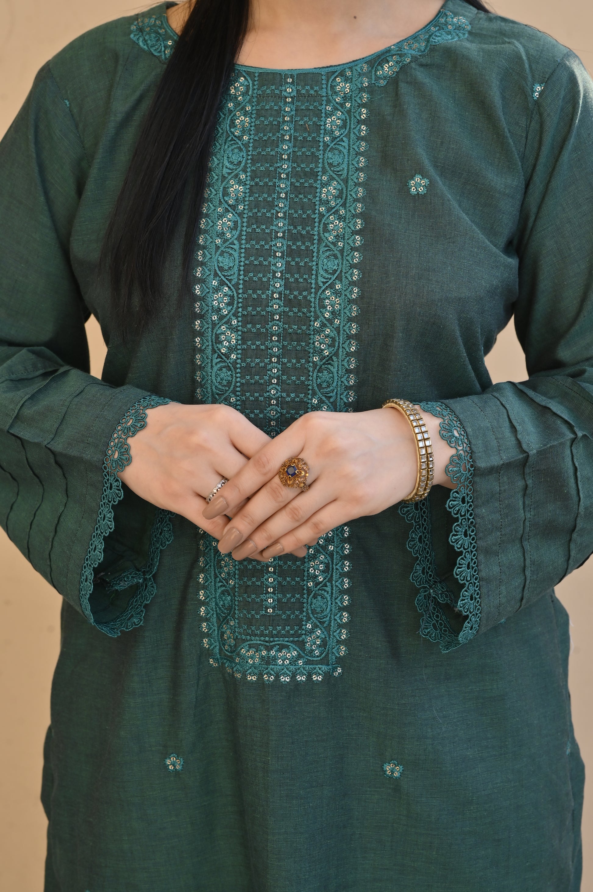Color: GREEN with elegant embroidery