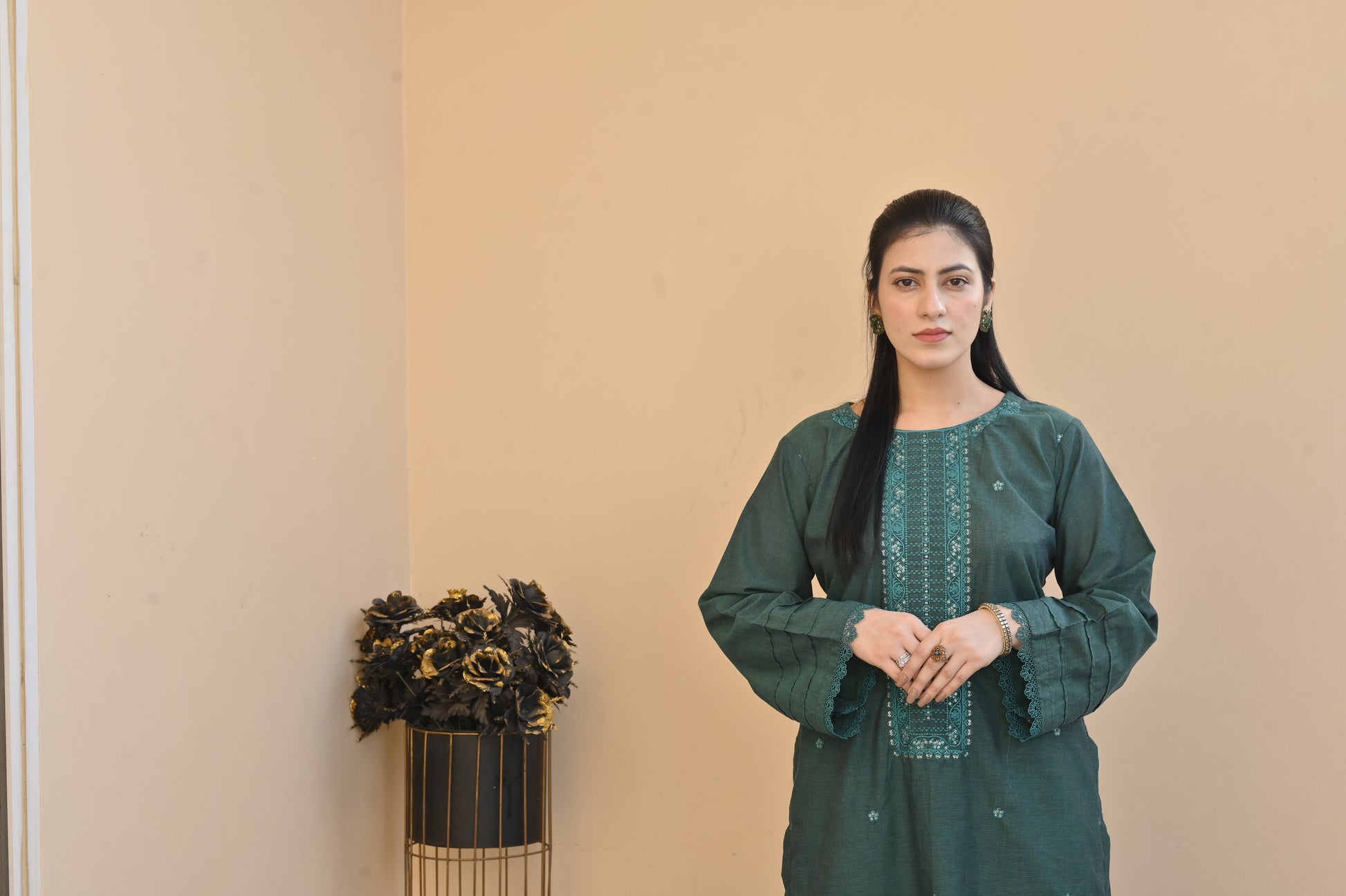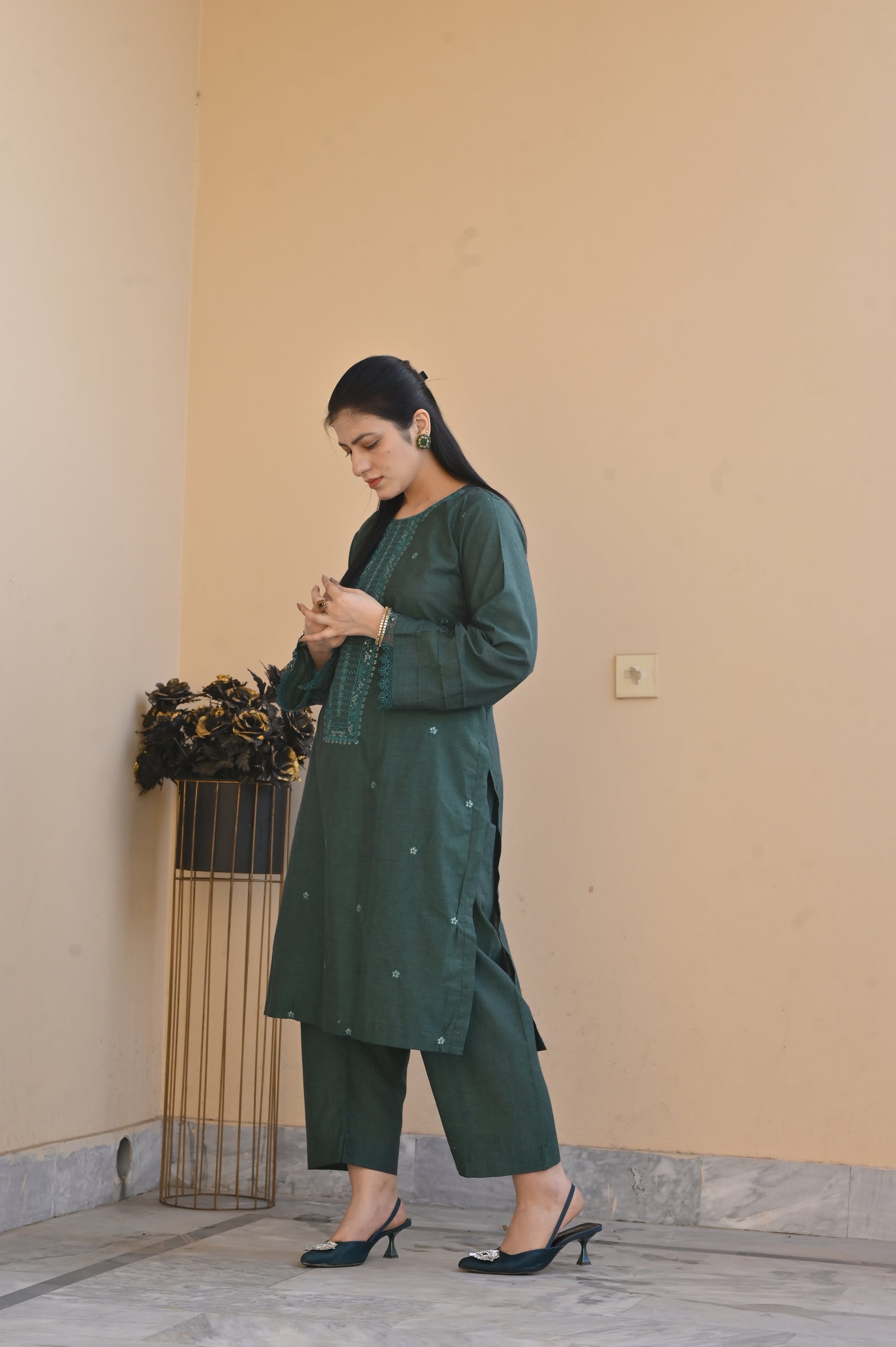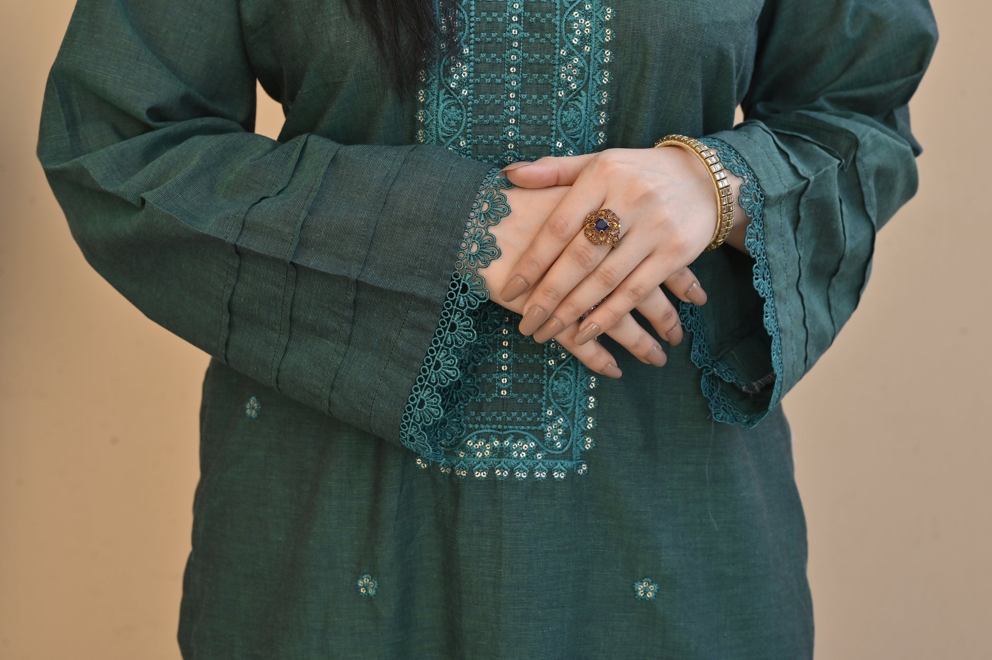 Color: GREEN with elegant embroidery