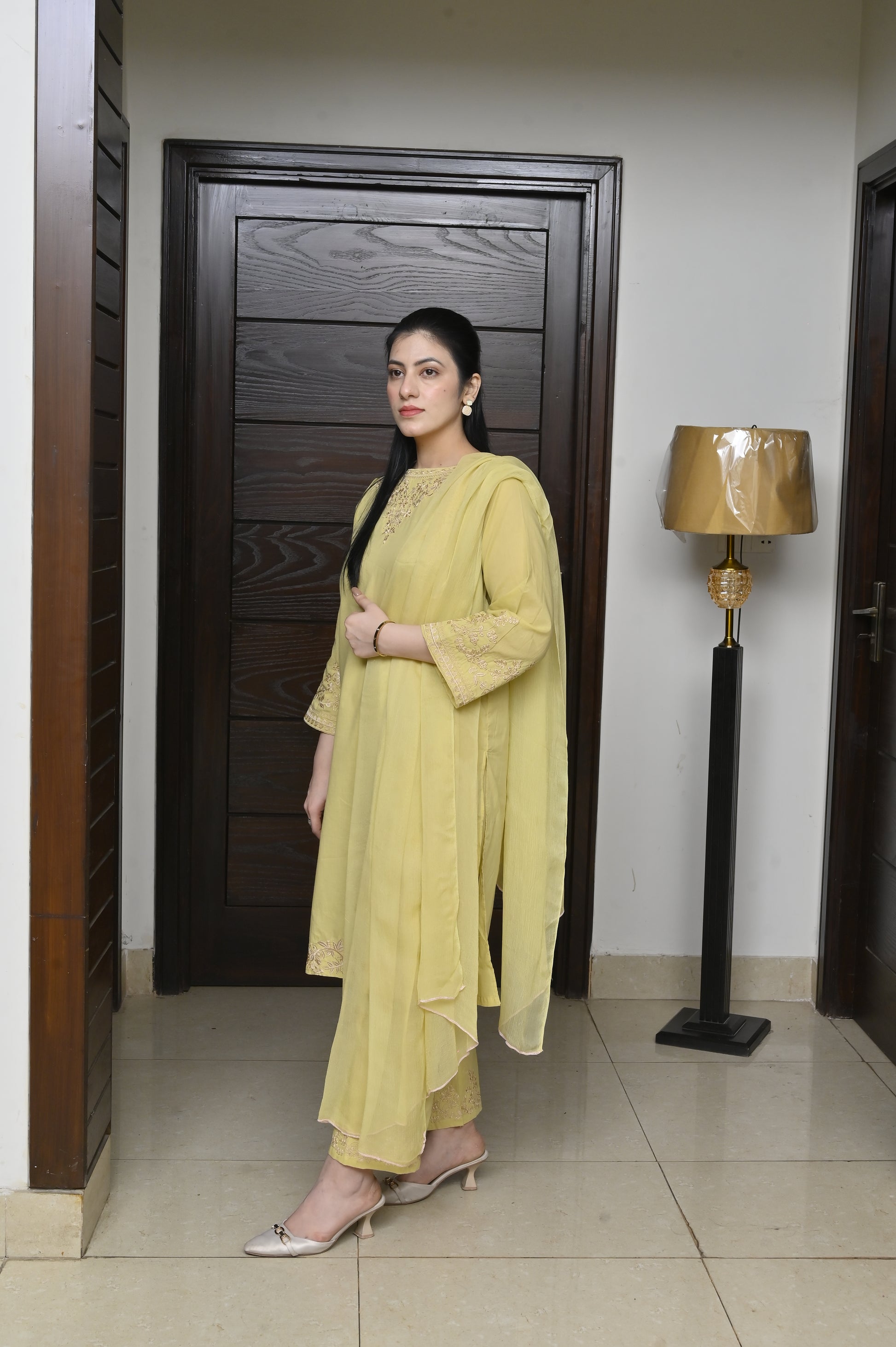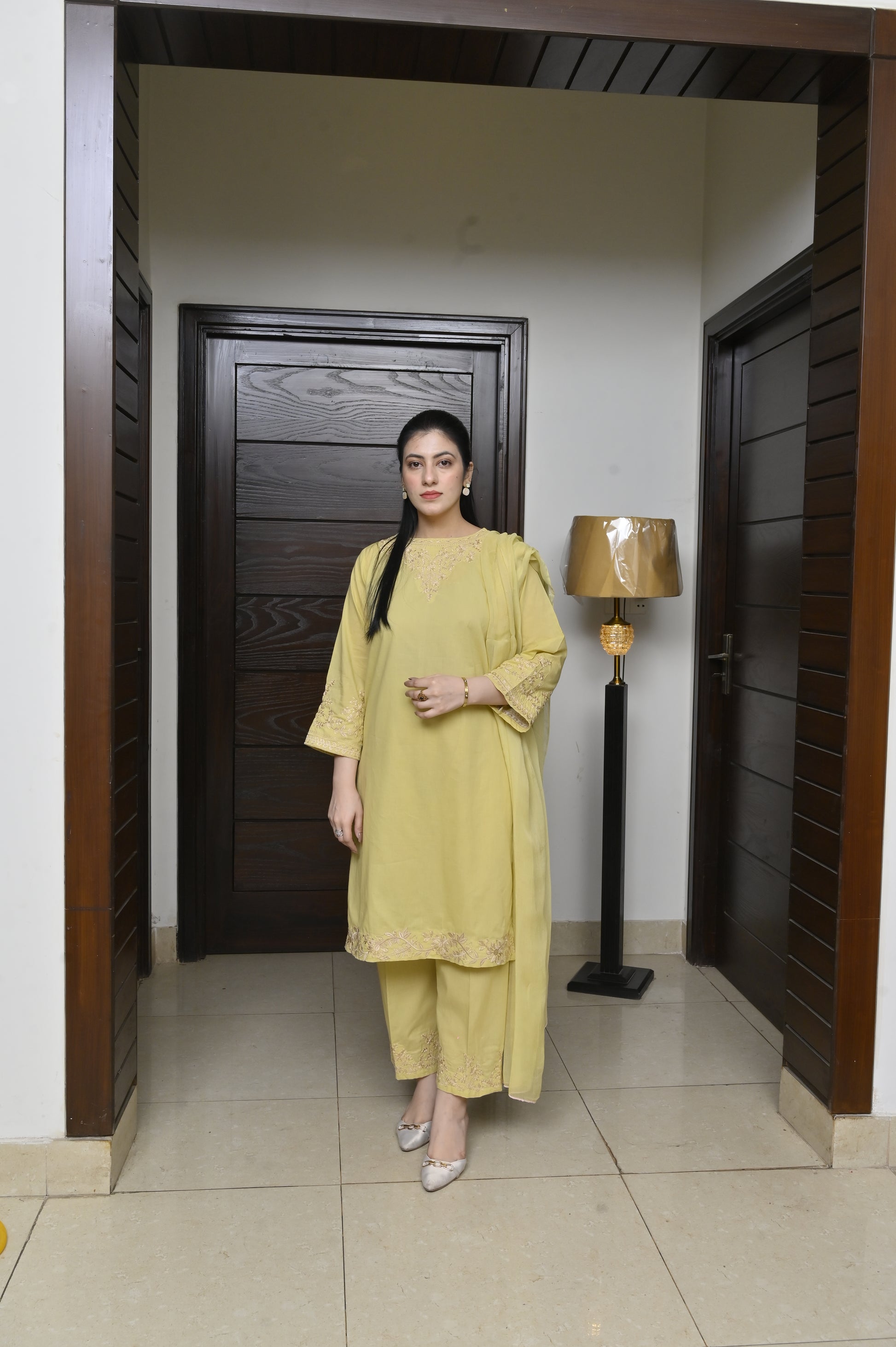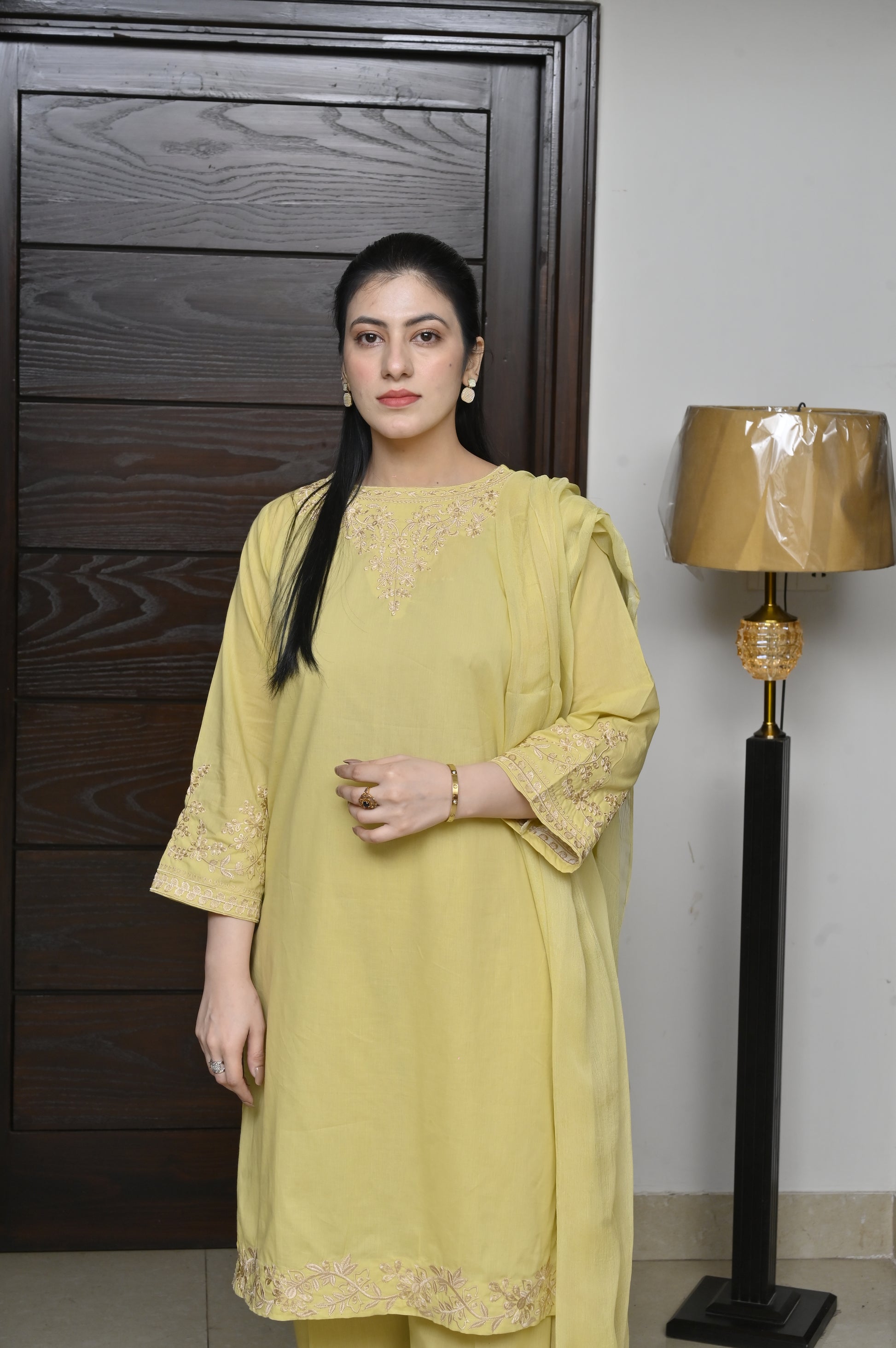 Step into elegance with this stunning 2-Piece Embroidered Stitched Women’s Suit (lemon). Designed for both comfort and style, this outfit features delicate embroidery on the neckline, sleeves, and borders, giving it a graceful and sophisticated appeal. The soft yellow shade adds freshness and charm, making it a perfect choice for both casual and semi-formal occasions.