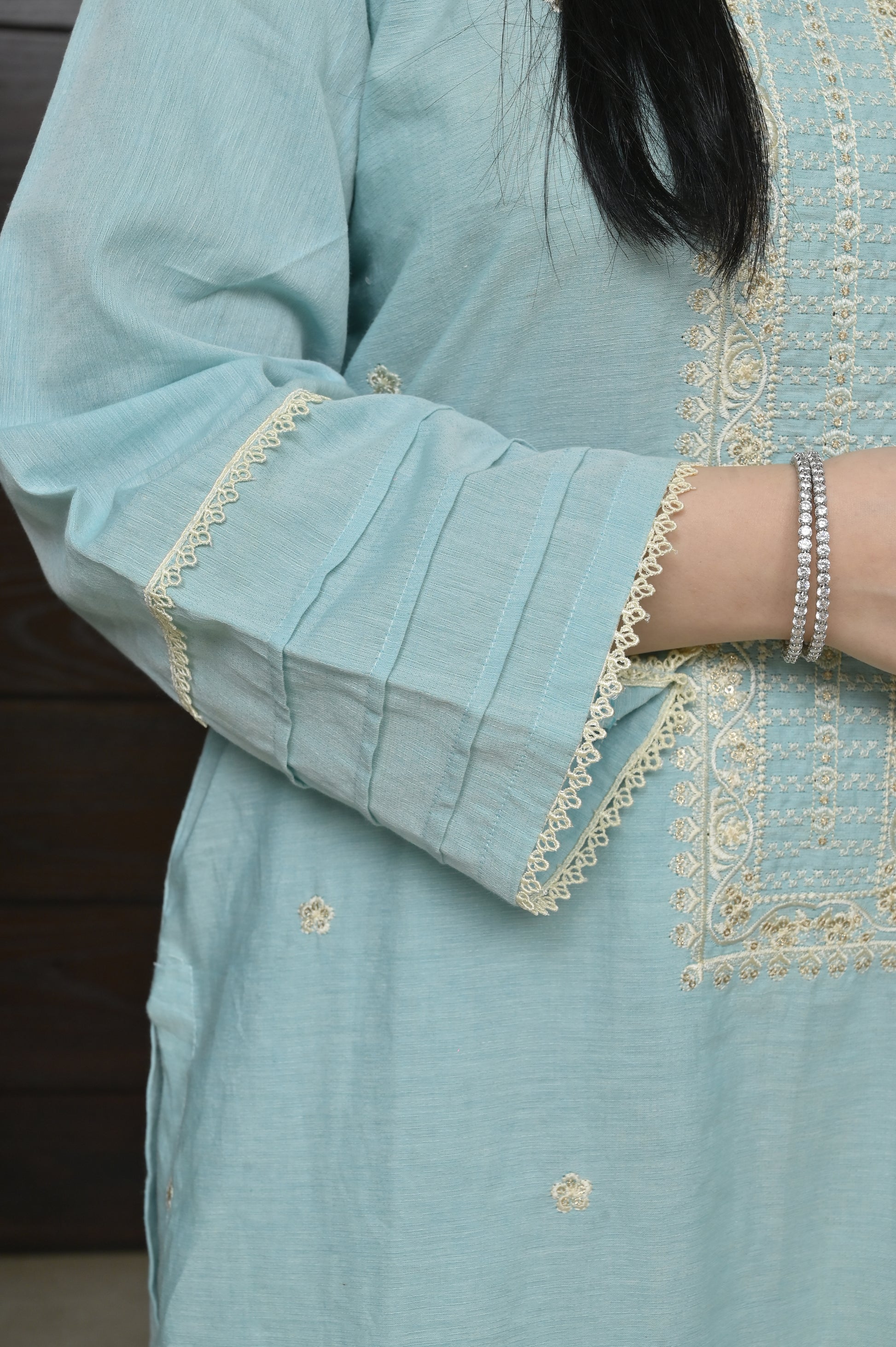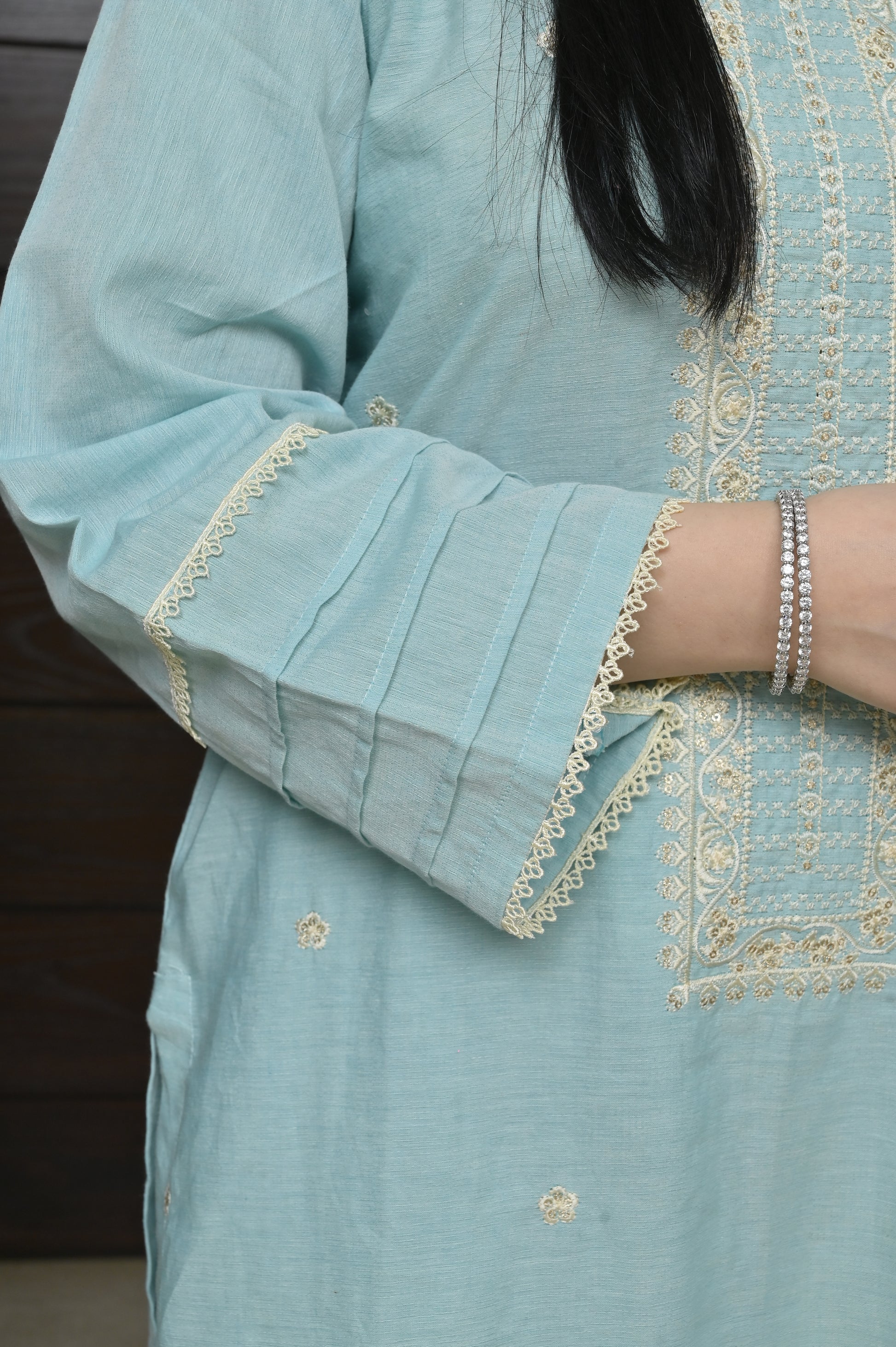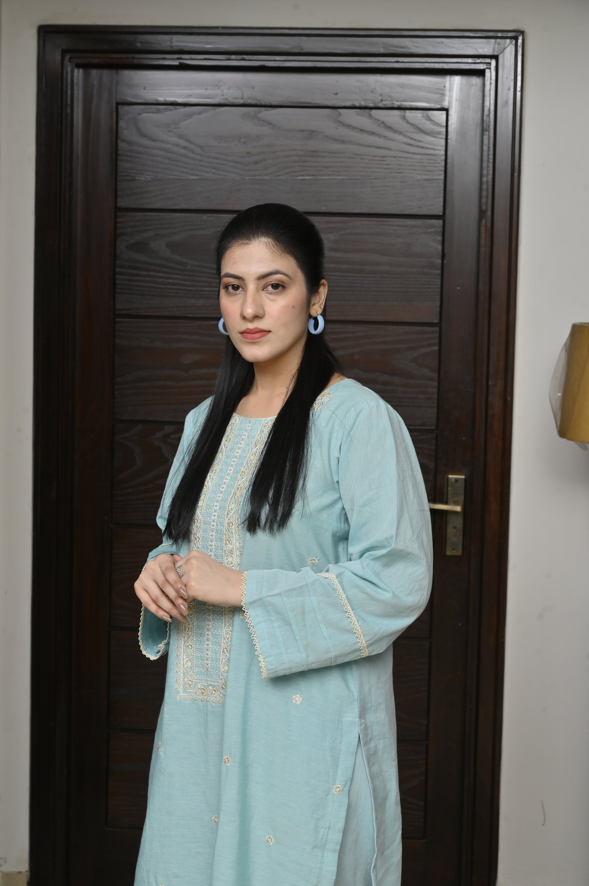Stay effortlessly stylish with this 2-Piece Embroidered Stitched Women’s Suit (Soft Blue). Designed in premium blended cotton fabric, this outfit offers a perfect balance of comfort and elegance. The subtle gray shade is beautifully highlighted with fine embroidery, making it a versatile choice for both casual and semi-formal wear.
